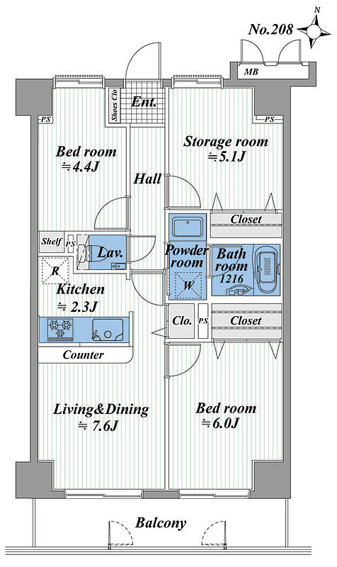 バルコニー面積 | 7.67m2 | 主要採光面 | 南 |